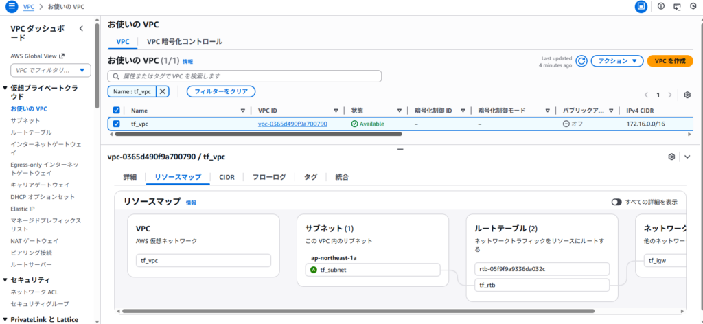 実際にGUIを確認してみて、AWSリソースが作成されていることを確認できました。