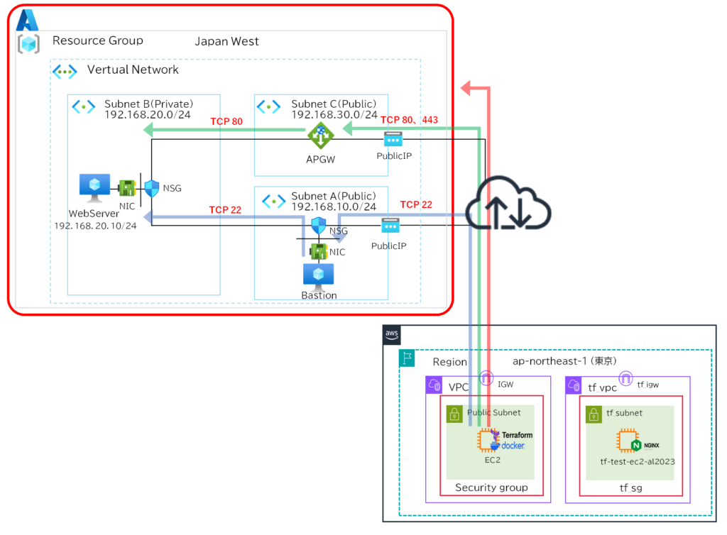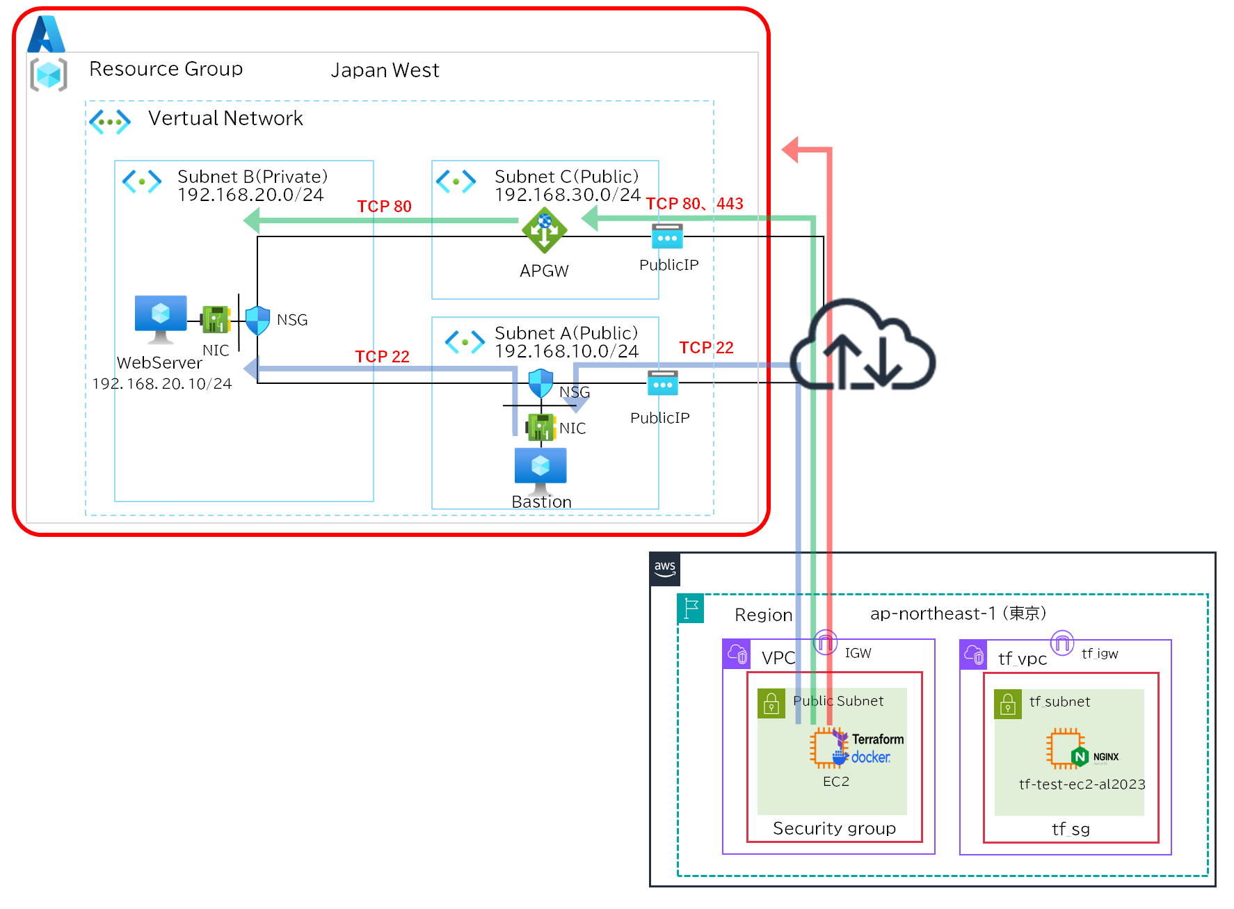 Azureでは趣向を変えてPublic Subnet、Private Subnet、Application Gatewayを作成していきます。